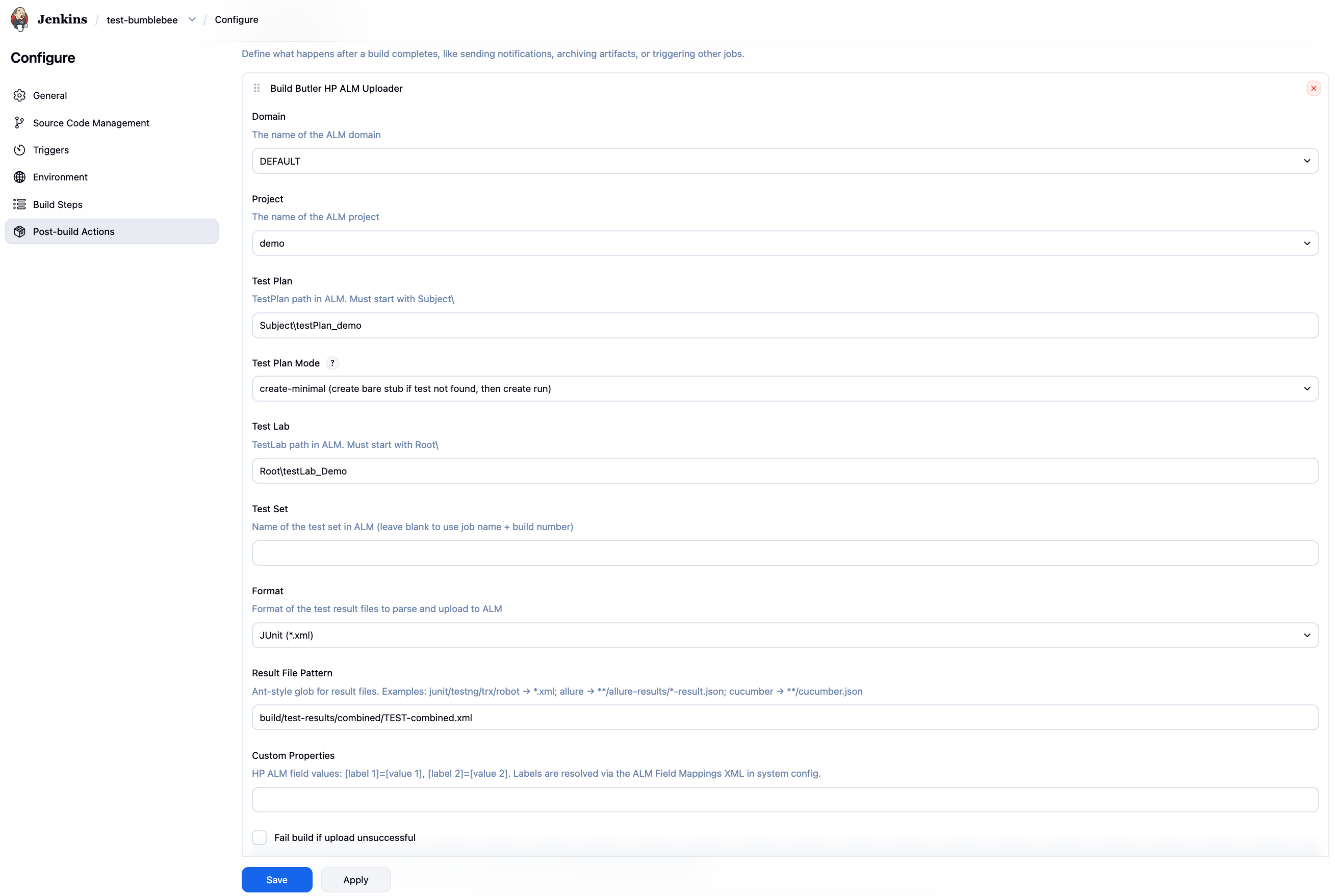 HP ALM Uploader post-build step