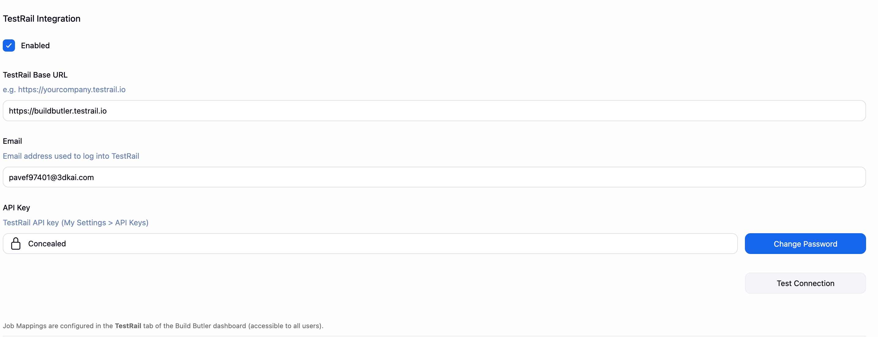 Job mappings are configured in the TestRail tab of the BuildButler dashboard. See Test Case Management → TestRail for the full configuration reference.